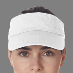 100% washed cotton; Precurved visor; Matching self-adhesive closure; 4"w x 2 1/4"h;
