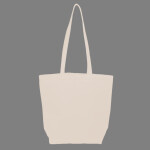 6 oz., 100% cotton canvas; 22" self-fabric handles; 13"w x 13"h approx. imprint/embroidery area; Size: 14 1/2"w x 15 1/2"h;
